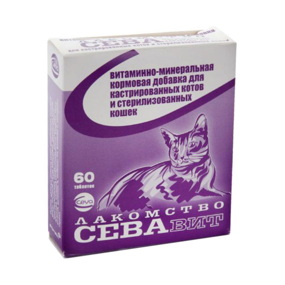 СЕВАвит, витамины для кошек кастрированных и стерилизованных, уп. 60 таблеток