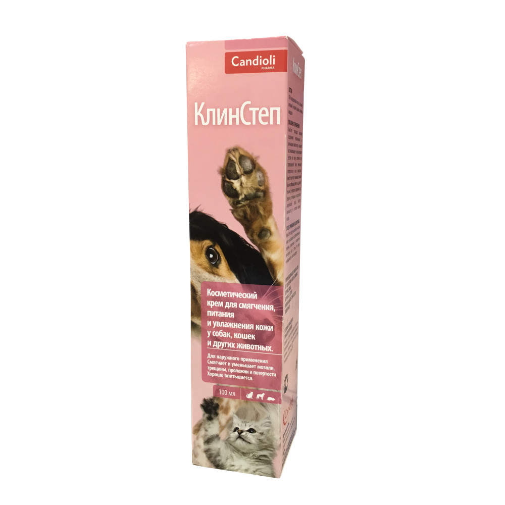 КлинСтеп - крем косметический для увлажнения кожи, который можно наносить несколько раз в течении дня по необходимости и мягко массируя пораженную область втирать в кожу животного.