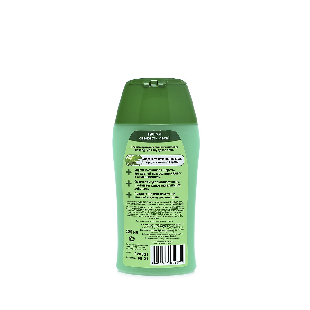 Шампунь содержит кондиционер и экстракты лекарственных растений: крапивы, череды, листьев березы. Крапива укрепляет и питает луковицу волоса, препятствует выпадению шерсти, предупреждает ломкость. Череда смягчает и успокаивает кожу, препятствует шелушению, обладает противовоспалительным и ранозаживляющим свойством. Береза успокаивает, снимает раздражение, устраняет специфический запах, предотвращает появление перхоти. Провитамин В-5 оказывает заживляющее, увлажняющее, смягчающее действие, придает блеск и увлажняет шерсть.