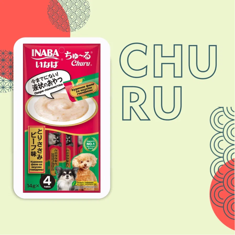 Inaba Churu 4*0,014кг куриное филе со вкусом говядины лакомство-пюре для собак